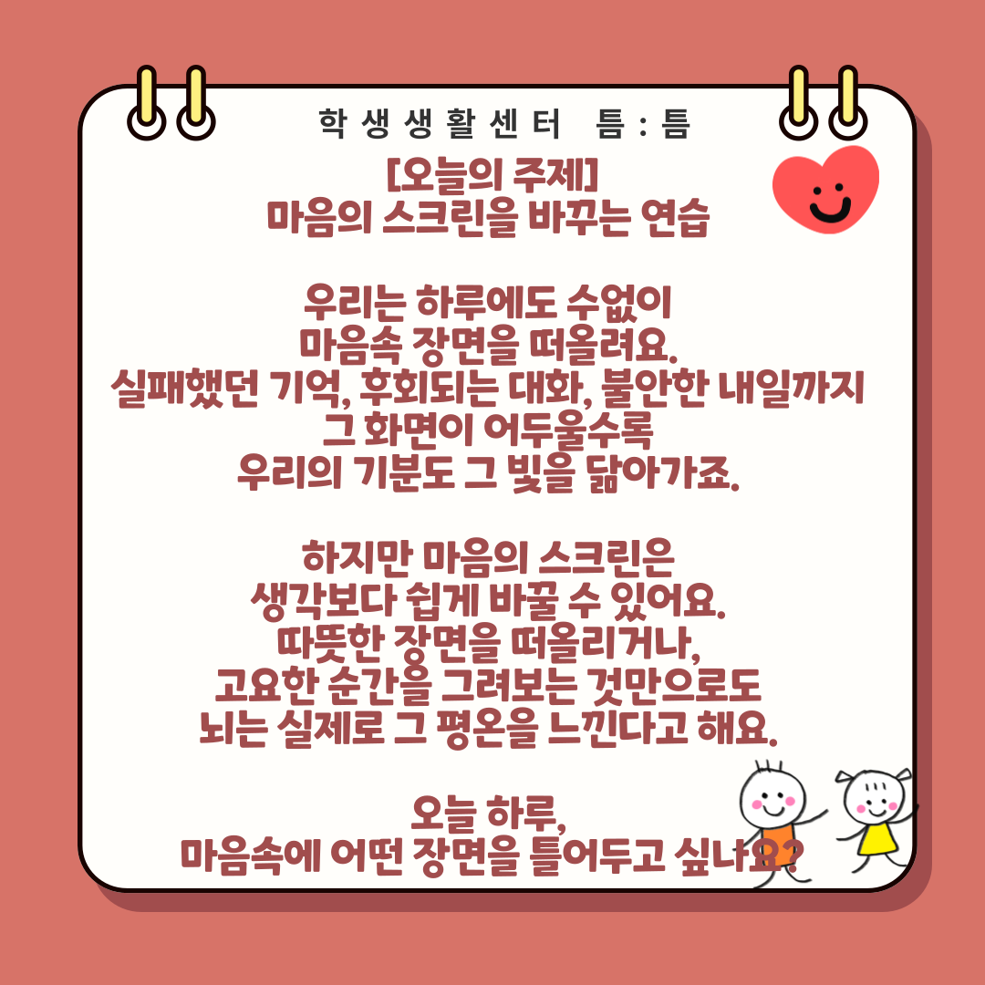 [오늘의 주제] 마음의 스크린을 바꾸는 연습